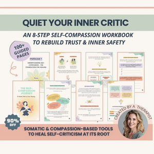 This 130+ page printable workbook is perfect for individuals struggling with self-criticism, anxiety, and emotional overwhelm. With over 250 exercises, prompts, and reflections, it combines evidence-based methods from Compassion-Focused Therapy (CFT), Mindful Self-Compassion (MSC), Acceptance & Commitment Therapy (ACT), and somatic practices to support deep healing and personal growth.